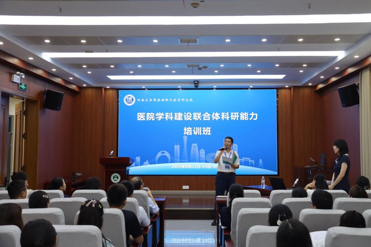 为深化医教研协同,加强医院科研人才队伍建设,以科技创新驱动医院高质量发展,8月22日至24日,bw必威西汉姆联官网粤港澳转化医学研究院在Betway必威西汉姆联一楼报告厅成功举办了“医院学科建设联合体科研能力培训班”。本次培训聚焦临床科研实战需求,吸引了来自各合作医院的46名科研骨干和医院科研管理人员参加,旨在系统提升参训人员在科研课题设计、国家自然科学基金标书撰写、临床新技术应用及医院科研实验平台建设和管理等方面的核心能力。