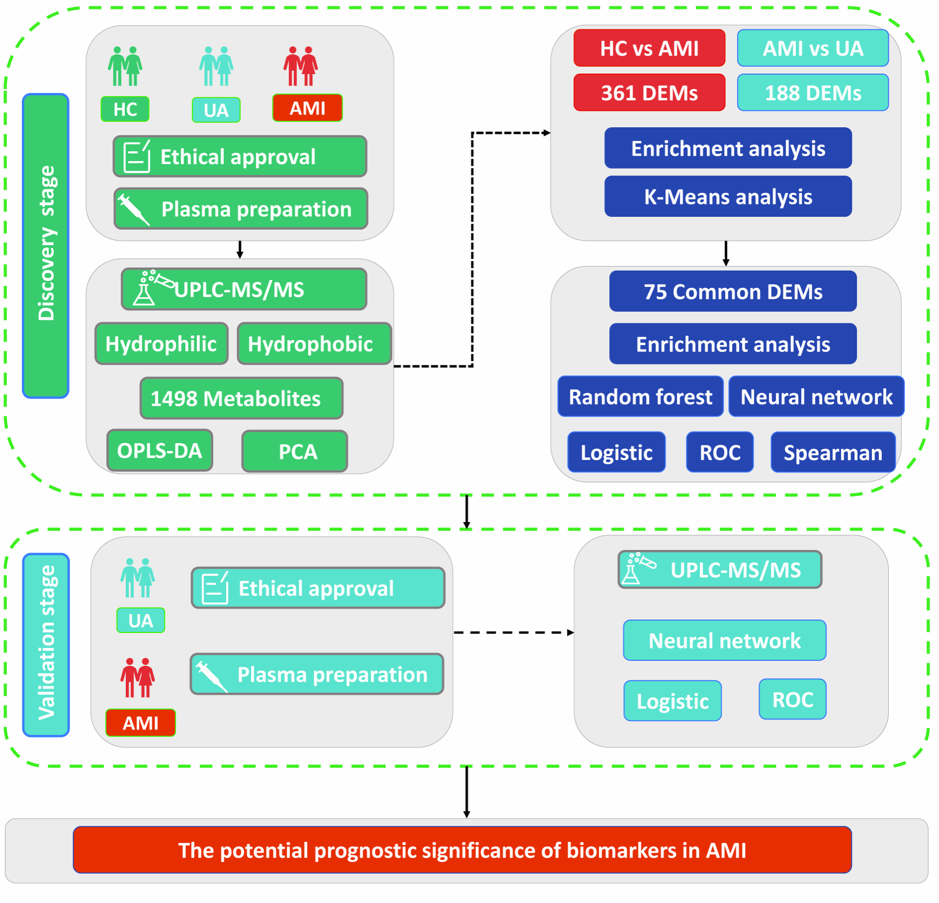 该研究应用了UPLC-MS/MS检测平台,并结合机器学习算法,实现了对代谢物的高通量、高灵敏度检测,为鉴定新的生物标志物提供了极具价值的参考方向。该研究成果不仅为AMI的早期诊断和治疗提供了全新的视角和有力的工具,还有望显著提升AMI的诊断精准度和治疗效果,进而有效减轻AMI对公共卫生造成的沉重负担。