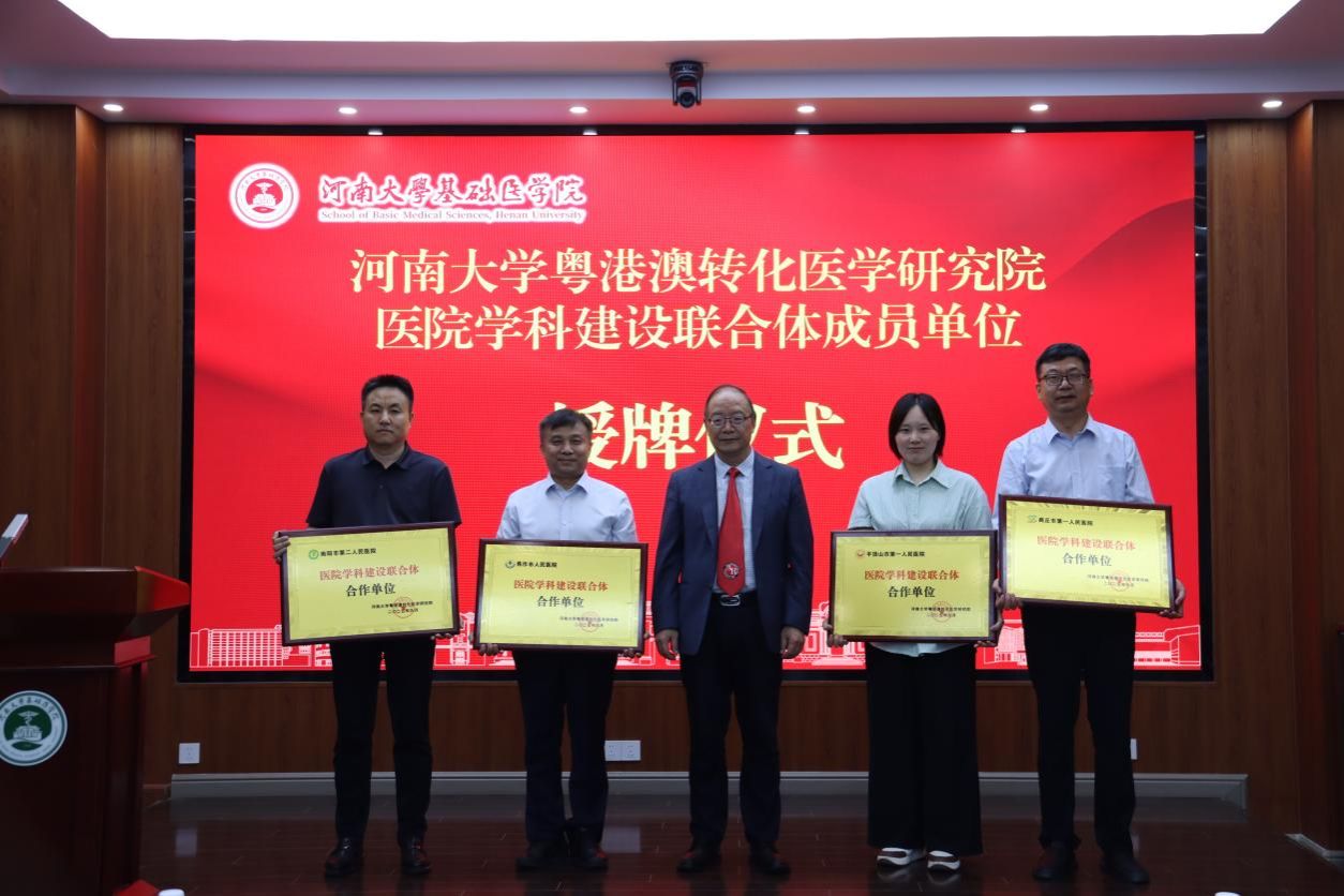 随后,大会举行了bw必威西汉姆联官网粤港澳转化医学研究院-医院学科建设联合体成员单位授牌仪式,标志着医联体合作迈入新阶段。开封市中心医院院长钱伟军作为医院学科建设联合体成员单位代表进行发言,他介绍了医院的学科建设成果,表达了对未来深度合作、共谋发展的坚定信心和美好展望,诚挚提出三项合作倡议:包括协助配备院长科研助理、支持高层次科研人才引进与联合培养以及深化科研平台协同。钱院长表示,期待通过基础研究与临床应用的深度融合,进一步提升区域医疗服务能力,为守护人民群众健康作出更大贡献。