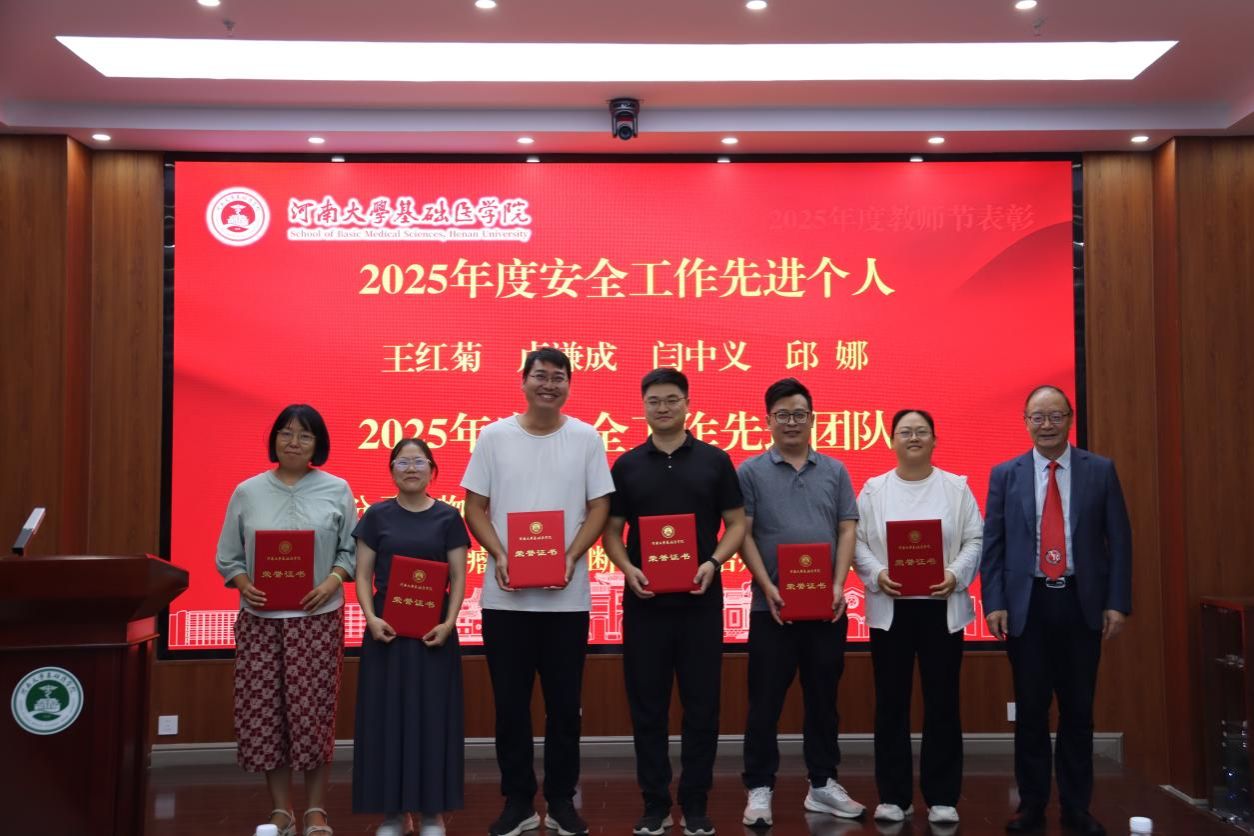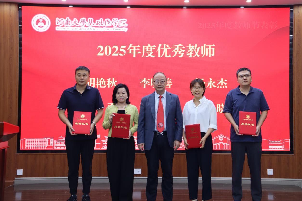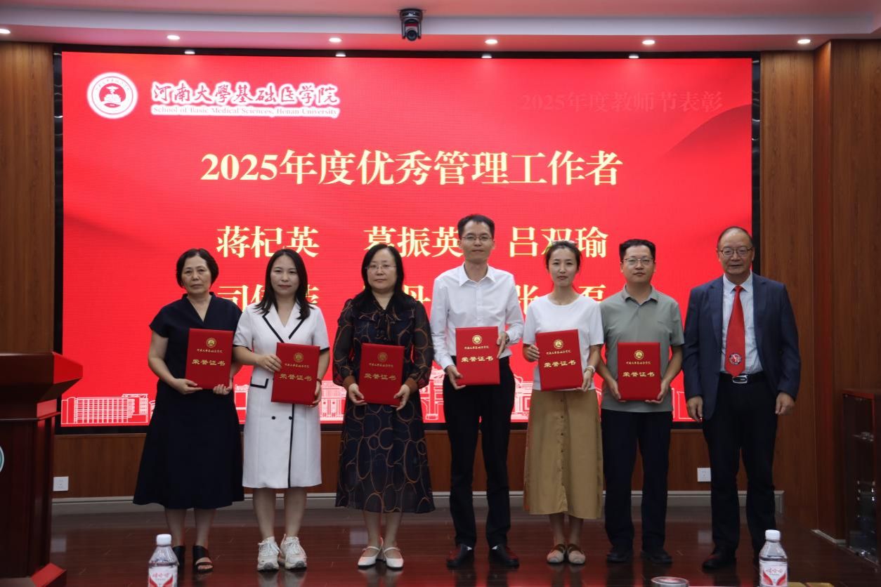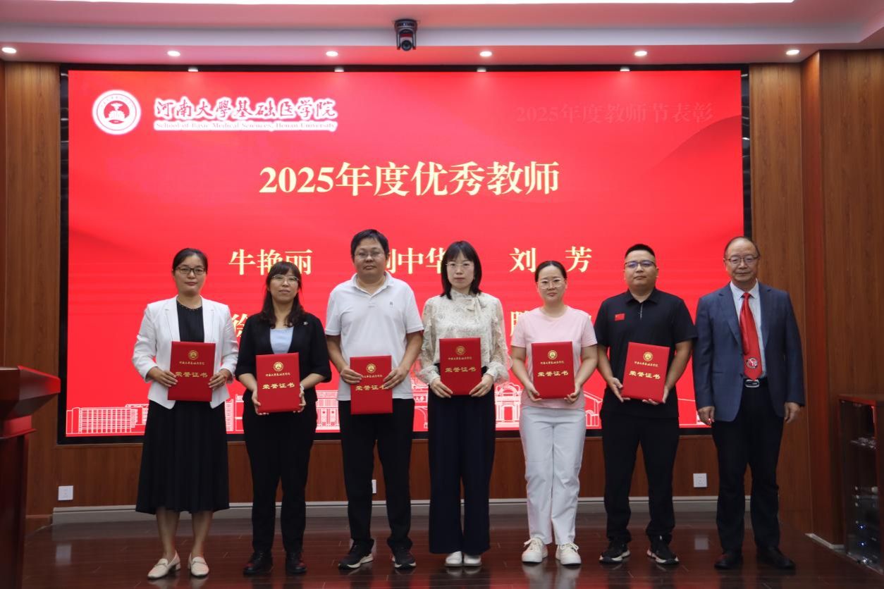 在大会表彰环节,傅侃达书记宣读Betway必威西汉姆联2025年度表彰决定,李继承院长为获奖教师代表颁奖并合影留念。